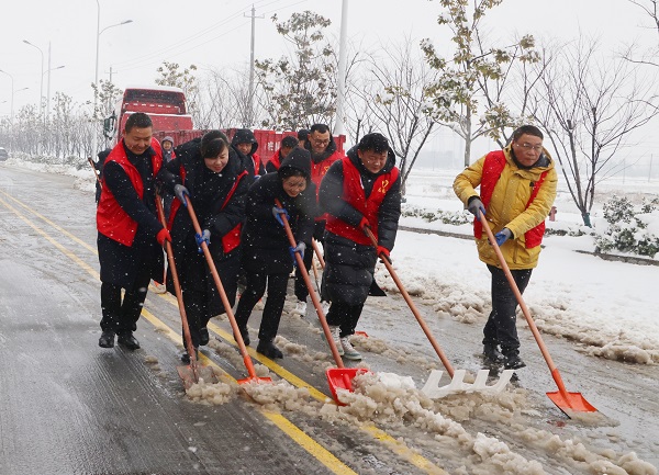 近日,受強冷空氣影響,霍邱縣迎來了連續(xù)雨雪天氣,縣城道路出現(xiàn)積雪、結(jié)冰現(xiàn)象,給人民群眾出行帶來了安全隱患。2月4日,霍邱項目黨支部積極響應(yīng)屬地新店鎮(zhèn)黨委號召,組織黨員志愿者開展了“掃雪除冰暖人心 白雪更映志愿紅”黨員志愿服務(wù)活動,采取以機械作業(yè)為主,人工清雪為輔的方式,開展掃雪除冰、疏通道路等工作,全力保障人民群眾安全出行,以實際行動彰顯國企擔當。