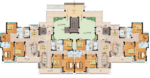 突出入戶大堂、小區(qū)入口。廣場地面雕刻出方磚鋪地,運(yùn)用人工分色處理,打磨噴涂上色;點(diǎn)綴一些汽車、行人、休憩椅、雕塑小品及各種植物等環(huán)境配套設(shè)施使商業(yè)廣場更添休閑味道,環(huán)境更加豐富。并在廣場設(shè)置地?zé)艏盁艄庖栽黾幽P鸵咕靶Ч?。在總體協(xié)調(diào)的基礎(chǔ)上,盡量提高空間感和視覺效果,按照實(shí)際施工尺寸適當(dāng)拉寬環(huán)境及建筑樓距,適當(dāng)放大中心園林空間,以獲得更感性合理的模型視覺(多設(shè)置公園椅、庭園燈、樹木等),充分體現(xiàn)出城市自然與人文環(huán)境相互融合的特性。