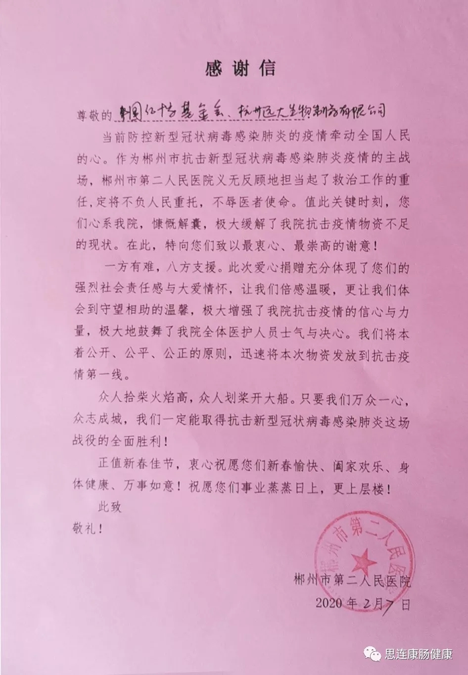 杭州遠(yuǎn)大生物制藥有限公司負(fù)責(zé)人表示:“希望通過(guò)捐贈(zèng)思連康,在疫情的防控方面盡微薄之力,使患者早日康復(fù),疫情早日結(jié)束?!?/span>