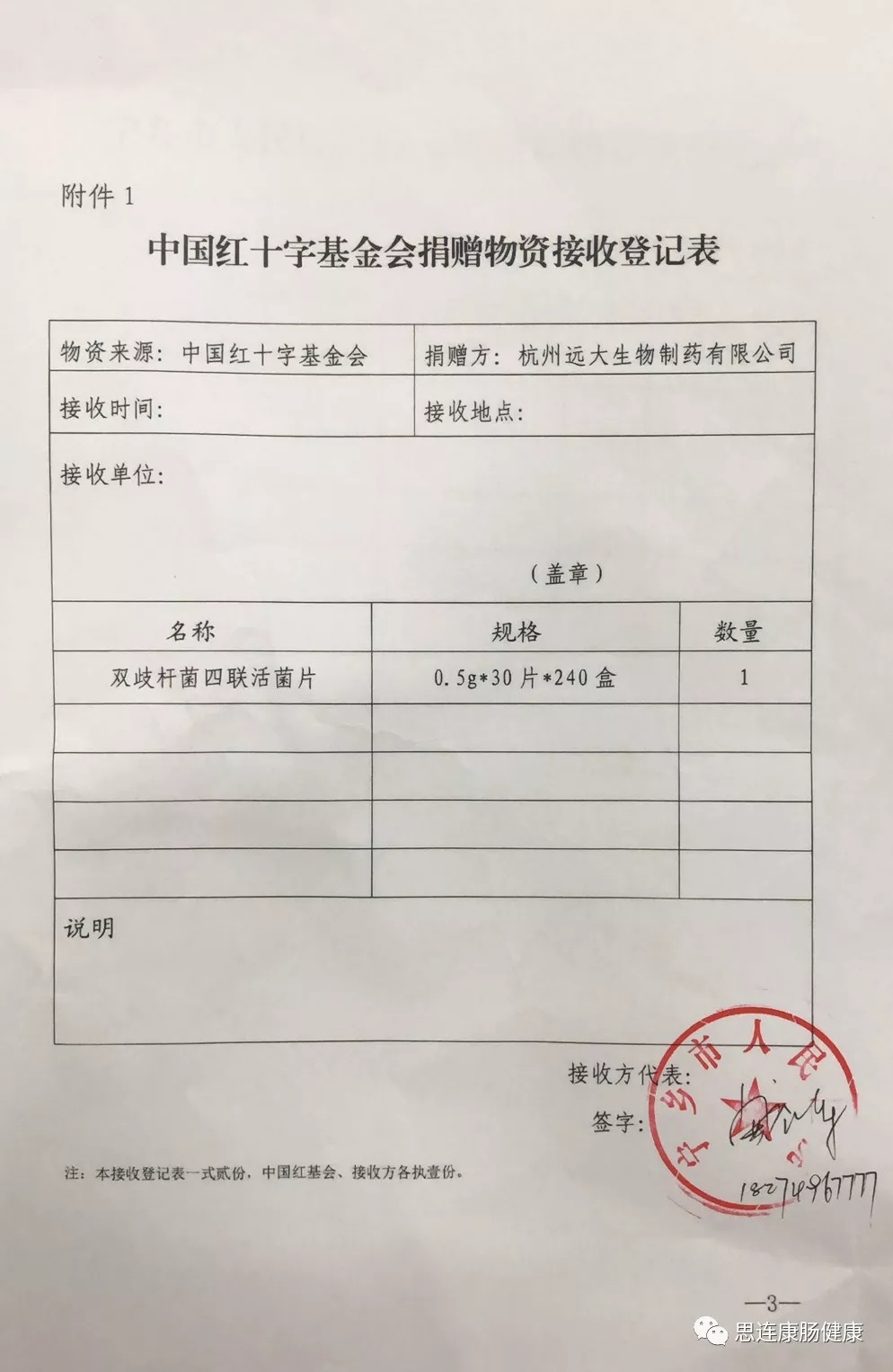 寧鄉(xiāng)市人民醫(yī)院發(fā)來(lái)中國(guó)紅十字基金會(huì)捐贈(zèng)物資接收登記表確認(rèn)已經(jīng)收到捐贈(zèng)藥品。
